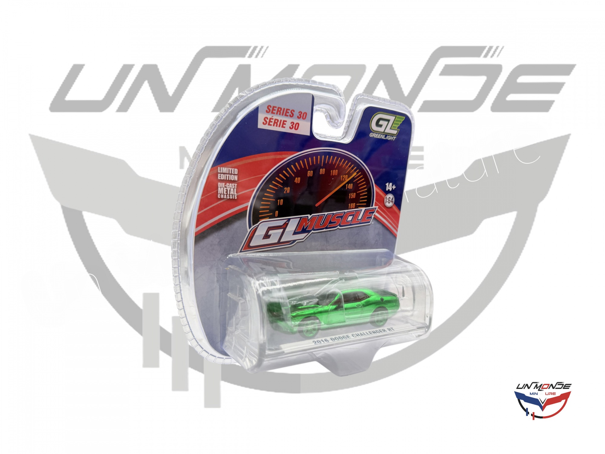 Accueil > Vehicules Miniatures > Véhicules 1:64 3 Inch > Dodge Challeger RT 2016 Full Green Edition