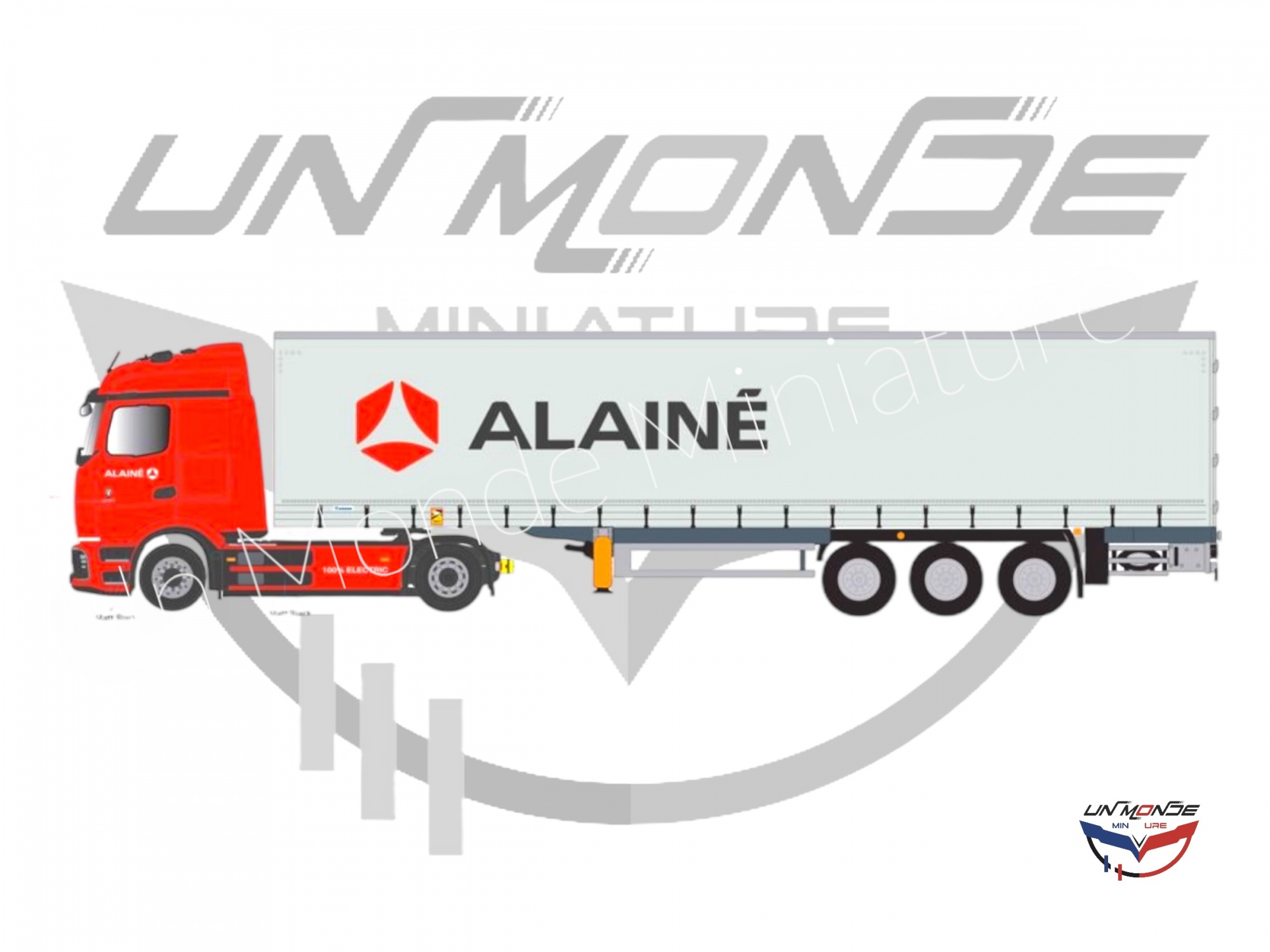 Accueil > Vehicules Miniatures > Véhicules 1:43 Camions > Mercedes E-Actros Remorque Tautliner GROUPE ALAINE