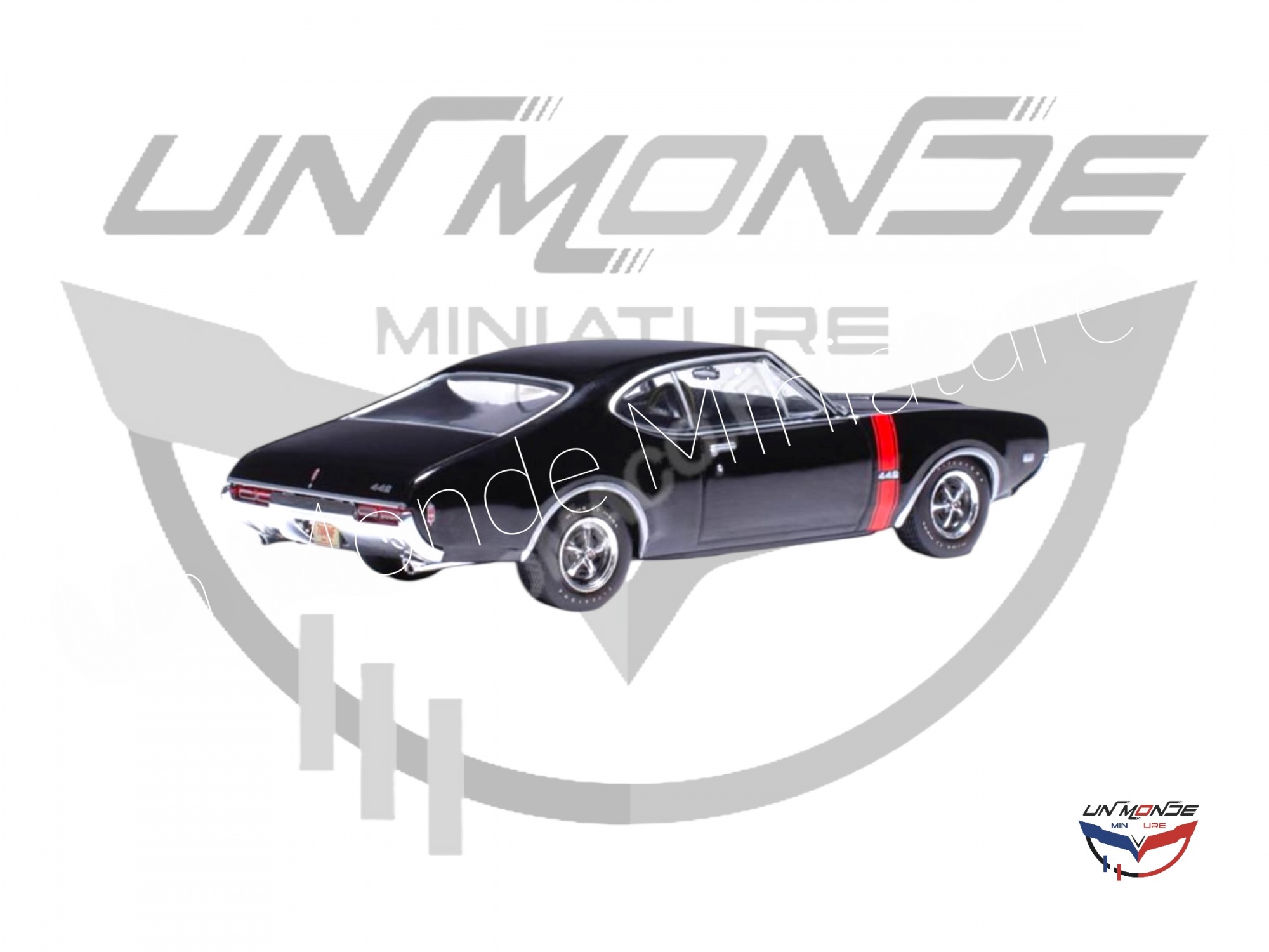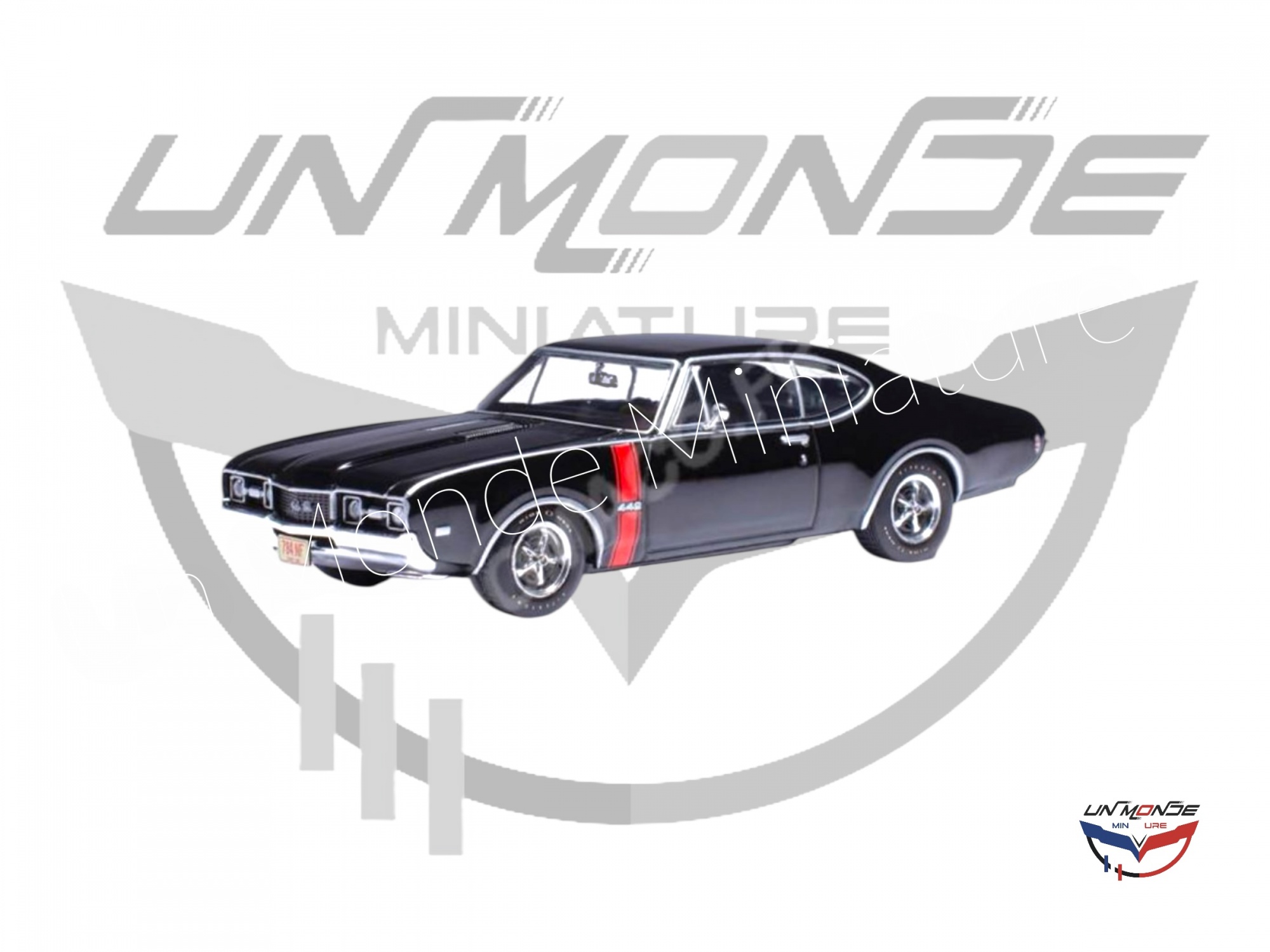 Accueil > Vehicules Miniatures > Véhicules 1:43 Voitures > Oldsmobile 442 W-30 1968 Ebony Black with Red Stripes