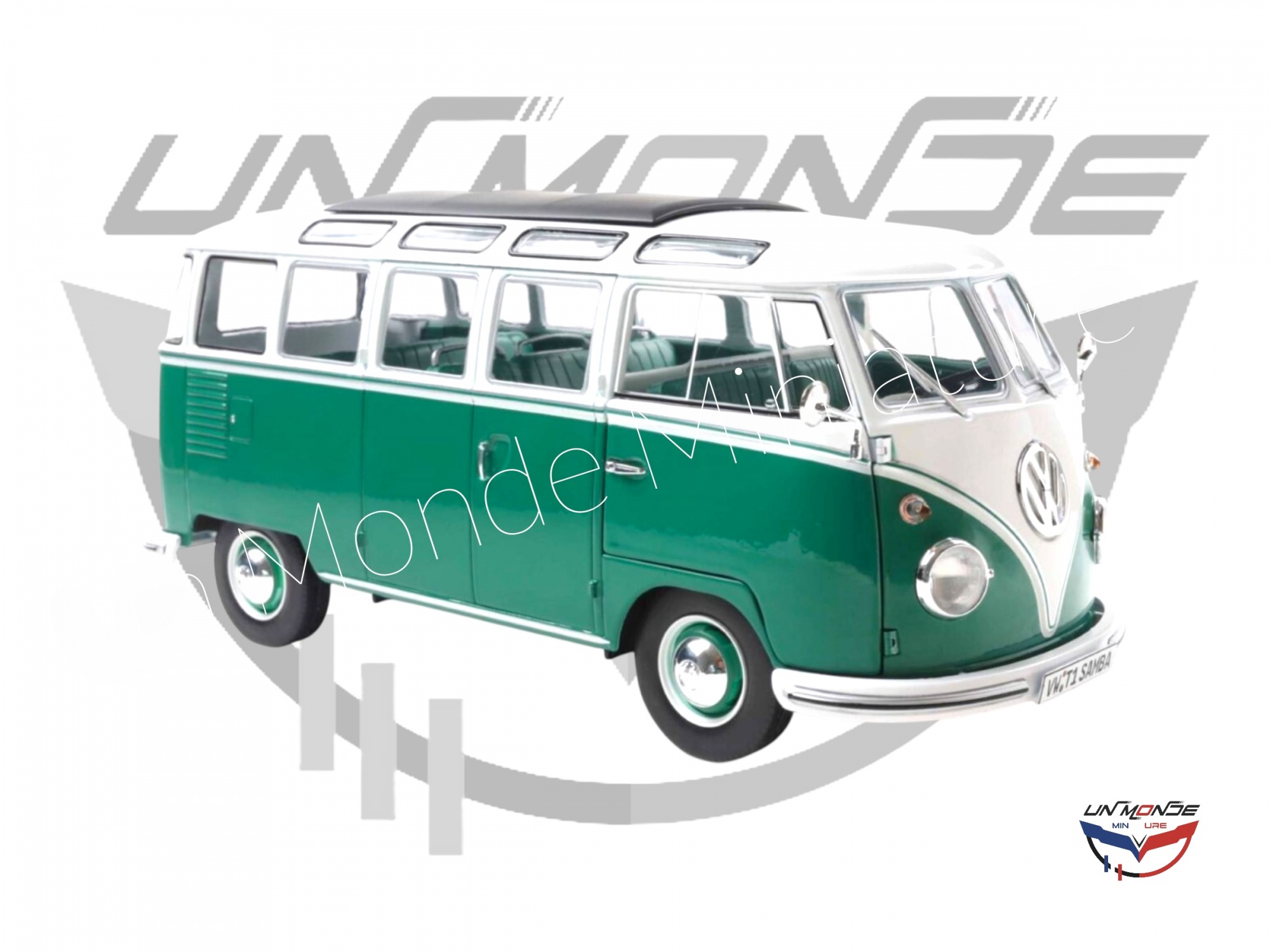 Accueil > Vehicules Miniatures > Véhicules 1:18 Voitures > Volkswagen T1 1962 Samba Green and White